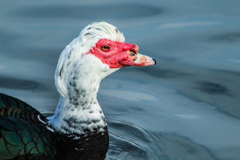 据1763年编纂的《泉州府志》载:“番鸭状似鸭而大似鹅,自抱其蛋而生,种自洋舶来”。引入后,在当地人民长期驯化和精心培育下,形成了遗传性能稳定、适应当地自然条件的中国番鸭。中国番鸭体躯长而宽,前后窄小,呈纺锤形,体躯与地面呈水平状态。头中等大小,喙较短而窄,呈“雁形喙”。喙基部和眼周围有红色或黑色皮瘤,上喙基部有一小块突起的肉瘤,雄性较雌性发达。头顶有一排纵向长羽,受刺激时会竖起。胸部宽而平,后腹不发达,尾狭长,翅膀长达尾部,腿短而粗状。羽毛分黑、白、黑白花,少数呈银灰色和赤褐色。